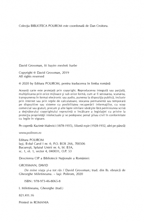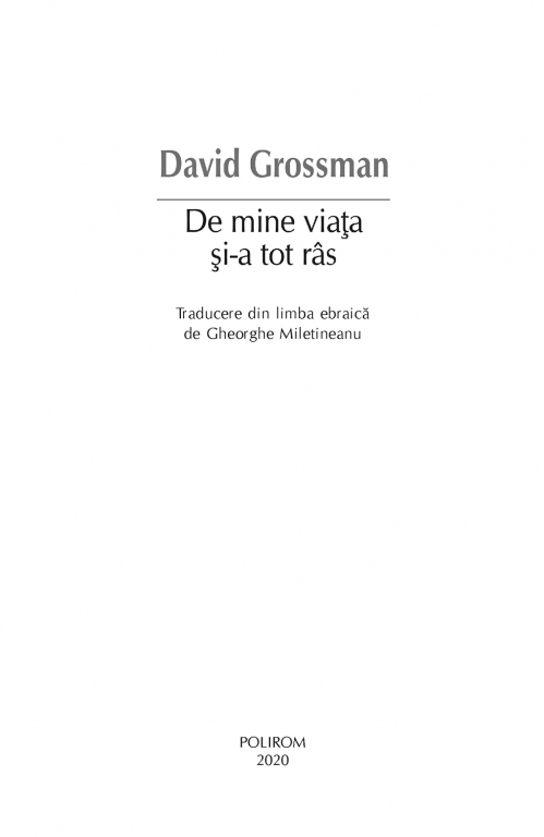 Comandă online cartea "De mine viața și-a tot râs" la 42,20 lei isbn 9789734680658 scrisă de David Grossman, tiparită la editura Polirom face parte din colecția BIBLIOTECA POLIROM -> Actual. Cartea poate fi livrată în circa 5 zile cu plata ramburs sau online cu cardul.