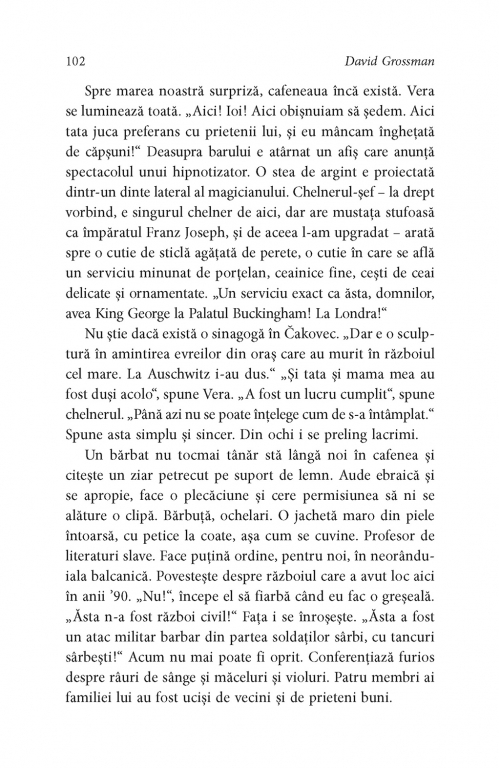 „Grossman – ca şi Oz – nu împarte lumea aceea în buni şi răi, nu ţine cu unii împotriva celorlalţi, nu are «soluţii», nici iluzii, nu urăşte decît războiul acela dintre două adevăruri la fel de îndreptăţite. Unul dintre acei romancieri – nu chiar foarte mulţi – pe care putem conta.” (Radu Cosaşu, Dilema veche)