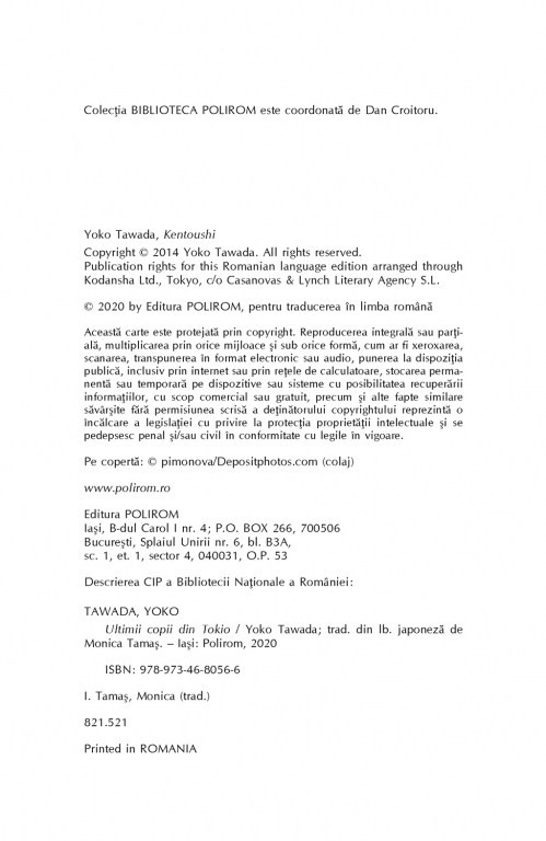 Comandă online cartea "Ultimii copii din Tokio" la 31,70 lei isbn 9789734680566 scrisă de Yoko Tawada, tiparită la editura Polirom face parte din colecția BIBLIOTECA POLIROM -> Actual. Cartea poate fi livrată în circa 2 zile cu plata ramburs sau online cu cardul.