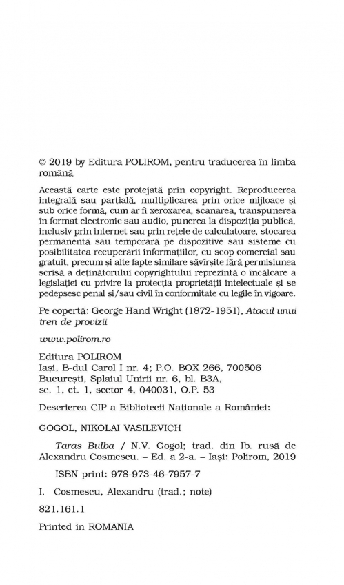 Comandă online cartea "Taras Bulba (ediție de buzunar)" la 24,30 lei isbn 9789734679577 scrisă de N.V. Gogol, tiparită la editura Polirom face parte din colecția Top 10+. Cartea poate fi livrată în circa 5 zile cu plata ramburs sau online cu cardul.