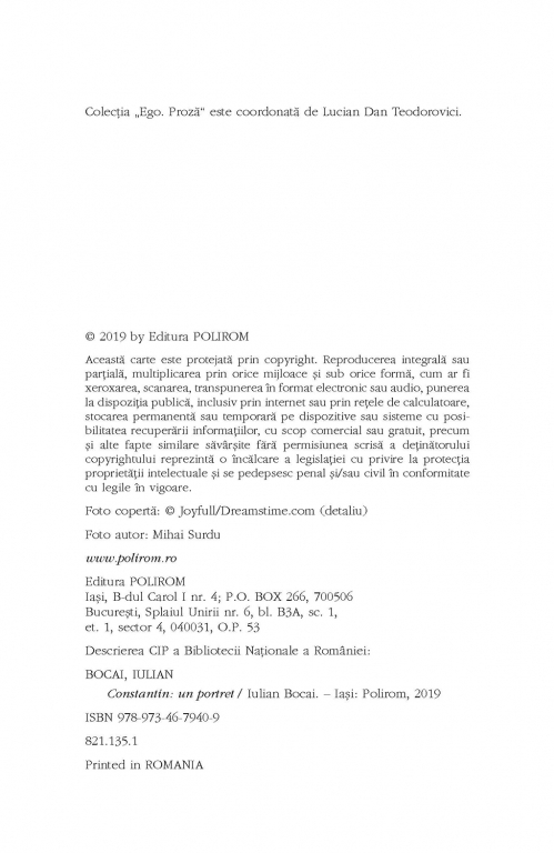 Comandă online cartea "Constantin" la 31,70 lei isbn 9789734679409 scrisă de Iulian Bocai, tiparită la editura Polirom face parte din colecția Ego. Proza. Cartea poate fi livrată în circa 2 zile cu plata ramburs sau online cu cardul.