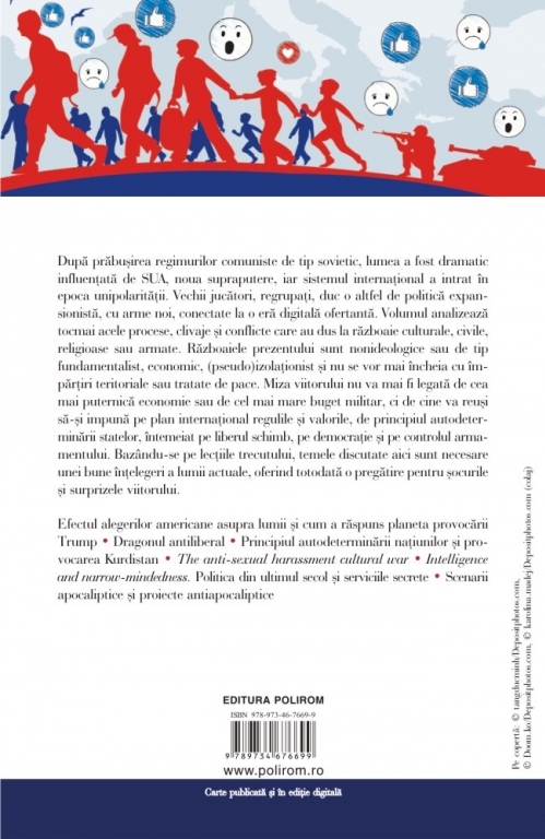 După prăbușirea regimurilor comuniste de tip sovietic, lumea a fost dramatic influențată de SUA, noua supraputere, iar sistemul internațional a intrat în epoca unipolarității. Vechii jucători, regrupați, duc o altfel de politică expansionistă, cu arme noi, conectate la o eră digitală ofertantă. Volumul analizează tocmai acele procese, clivaje și conflicte care au dus la războaie culturale, civile, religioase sau armate. Războaiele prezentului sînt nonideologice sau de tip fundamentalist, economic, (pseudo)izolaționist și nu se vor mai încheia cu împărțiri teritoriale sau tratate de pace. Miza viitorului nu va mai fi legată de cea mai puternică economie sau de cel mai mare buget militar, ci de cine va reuși să-și impună pe plan internațional regulile și valorile, de principiul autodeterminării statelor, întemeiat pe liberul schimb, pe democrație și pe controlul armamentului. Bazîndu-se pe lecțiile trecutului, temele discutate aici sînt necesare unei bune înțelegeri a lumii actuale, oferind totodată o pregătire pentru șocurile și surprizele viitorului.