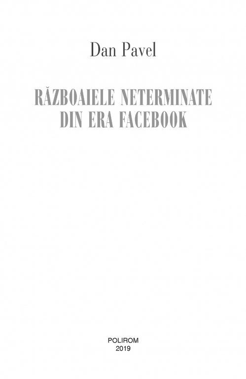 Comandă online cartea "Războaiele neterminate din era Facebook" la 42,20 lei isbn 9789734676699 scrisă de Dan Pavel, tiparită la editura Polirom face parte din colecția OPUS -> Stiinte politice. Cartea poate fi livrată în circa 5 zile cu plata ramburs sau online cu cardul.