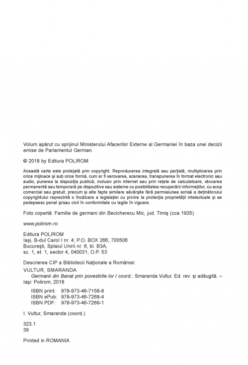 Volum apărut cu sprijinul Ministerului Afacerilor Externe al Germaniei în baza unei decizii emise de Parlamentul German.