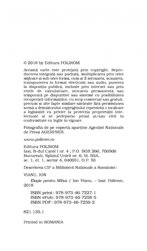 Comandă online cartea "Elegie pentru Mihai (ediție de buzunar)" la 23,21 lei isbn 9789734672271 scrisă de Ion Vianu, tiparită la editura Polirom face parte din colecția Eseuri si confesiuni. cu plata ramburs sau online cu cardul. Momentan titlul "Elegie pentru Mihai (ediție de buzunar)" nu este disponibil însa vă puteți înscrie pentru a fi notificat în momenul reaprovizionarii.