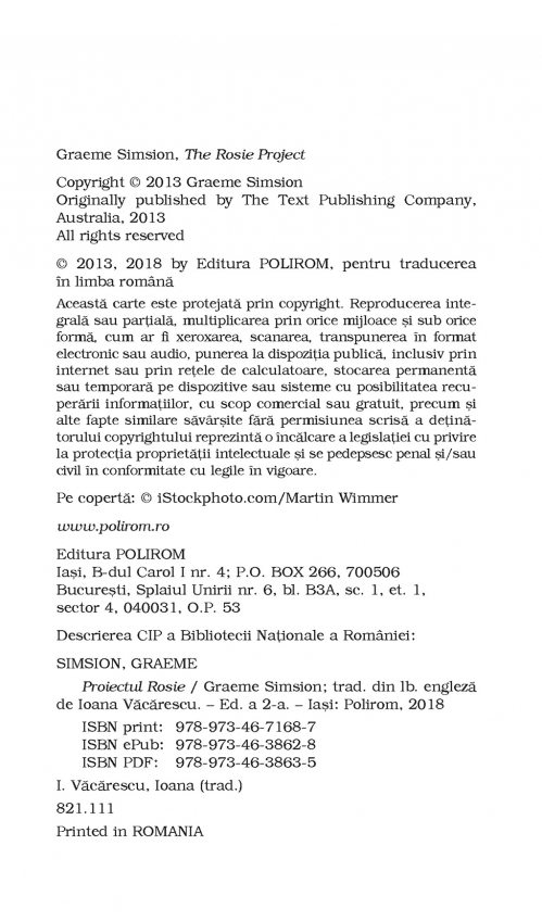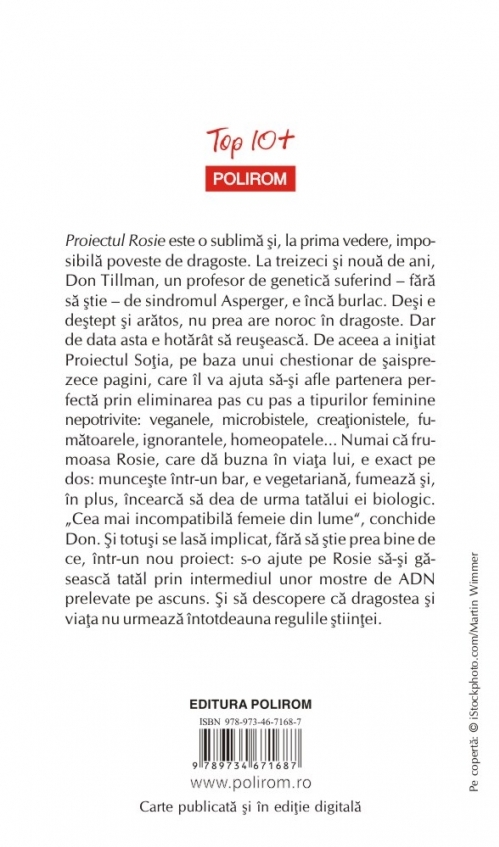Comandă online cartea "Proiectul Rosie (ediţie de buzunar)" la 26,40 lei isbn 9789734671687 scrisă de Graeme Simsion, tiparită la editura Polirom face parte din colecția Top 10+. Cartea poate fi livrată în circa 2 zile cu plata ramburs sau online cu cardul.