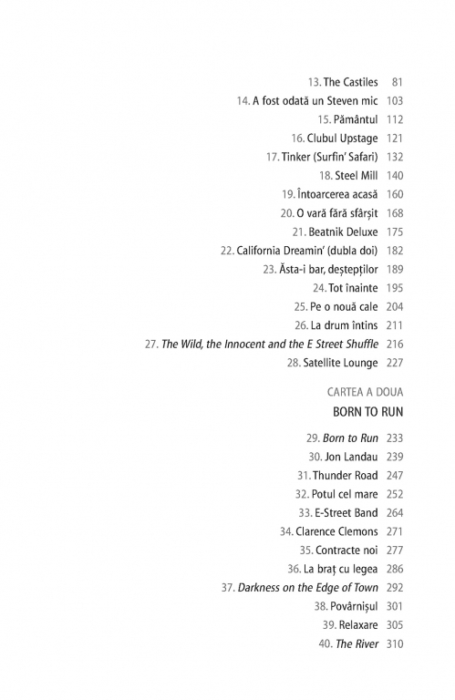 Rareori un artist şi-a istorisit viaţa cu atît de mult talent narativ şi forţă evocatoare. La fel ca în cîntecele sale („Thunder Road”, „Badlands”, „Darkness on the Edge of Town”, „The River”, „Born in the USA”, „The Rising”, „The Ghost of Tom Joad”, pentru a aminti doar cîteva), în autobiografia lui Bruce Springsteen găsim acea doză de lirism care l-a consacrat pe scena muzicală a lumii, dar şi înţelepciunea unui om care a ştiut să reflecteze profund la experienţele prin care a trecut în viaţă. În Born to Run, Bruce Springsteen povesteşte cum a crescut într-un mediu religios, în Freehold, New Jersey, înconjurat de poezia, pericolele şi întunericul care i-au stimulat apoi imaginaţia, ajungînd la momentul marii revelaţii: debutul lui Elvis Presley la The Ed Sullivan Show. Cantautorul evocă într-o manieră surprinzătoare dorinţa sa de a deveni muzician, începuturile ca rege al formaţiilor de bar din Asbury Park şi înfiinţarea E Street Band. Cu o candoare dezarmantă, Bruce Springsteen spune pentru prima dată povestea frămîntărilor personale care i-au inspirat cele mai bune compoziţii muzicale.