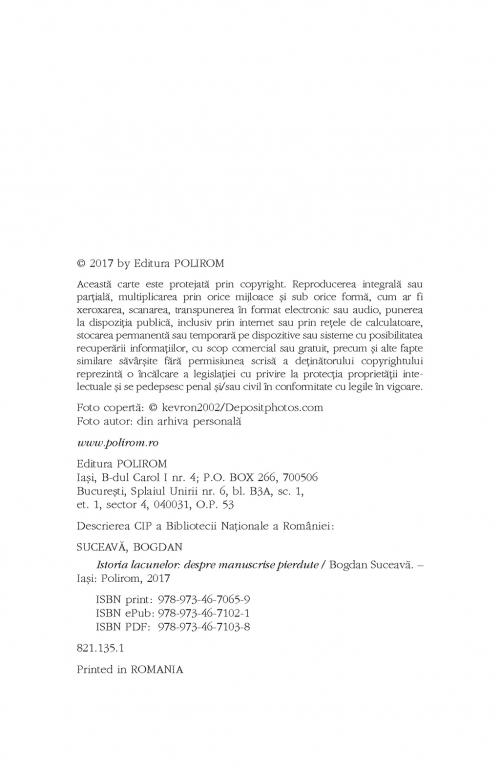 Comandă online cartea "Istoria lacunelor. Despre manuscrise pierdute" la 40,15 lei isbn 9789734670659 scrisă de Bogdan Suceava, tiparită la editura Polirom face parte din colecția -. cu plata ramburs sau online cu cardul. Momentan titlul "Istoria lacunelor. Despre manuscrise pierdute" nu este disponibil însa vă puteți înscrie pentru a fi notificat în momenul reaprovizionarii.