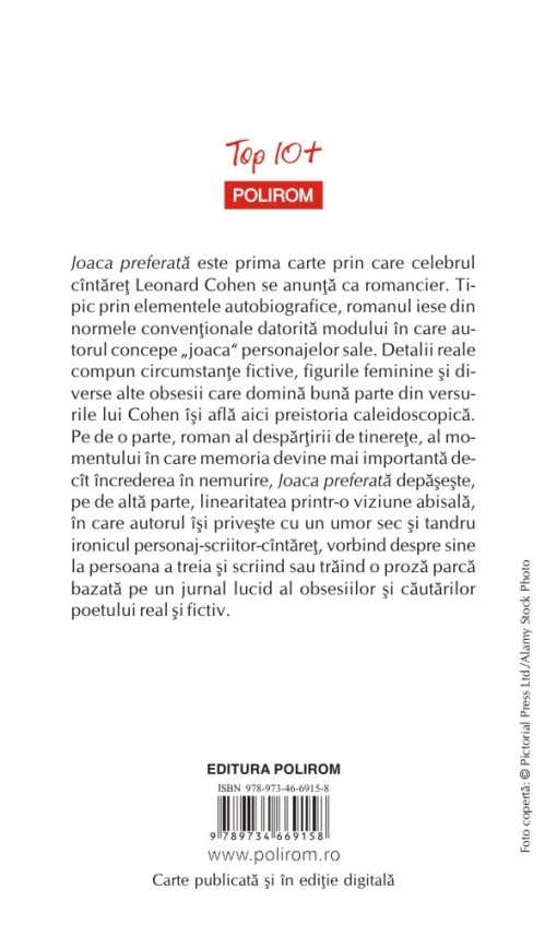 Comandă online cartea "Joaca preferată (ediție de buzunar)" la 11,66 lei isbn 9789734669158 scrisă de Leonard Cohen, tiparită la editura Polirom face parte din colecția Top 10+. cu plata ramburs sau online cu cardul. Momentan titlul "Joaca preferată (ediție de buzunar)" nu este disponibil însa vă puteți înscrie pentru a fi notificat în momenul reaprovizionarii.