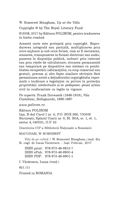Comandă online cartea "Vila de pe colină" la 11,66 lei isbn 9789734668137 scrisă de W. Somerset Maugham, tiparită la editura Polirom face parte din colecția Top 10+. cu plata ramburs sau online cu cardul. Momentan titlul "Vila de pe colină" nu este disponibil însa vă puteți înscrie pentru a fi notificat în momenul reaprovizionarii.