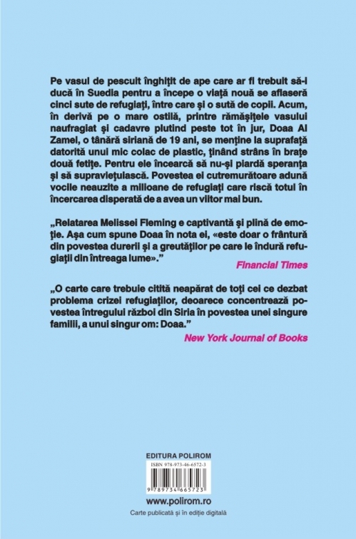 Pe vasul de pescuit înghiţit de ape care ar fi trebuit să-i ducă în Suedia pentru a începe o viaţă nouă se aflaseră cinci sute de refugiaţi, între care şi o sută de copii. Acum, în derivă pe o mare ostilă, printre rămăşiţele vasului naufragiat şi cadavre plutind peste tot în jur, Doaa Al Zamel, o tînără siriană de 19 ani, se menţine la suprafaţă datorită unui mic colac de plastic, ţinînd strîns în braţe două fetiţe. Pentru ele încearcă să nu-şi piardă speranţa şi să supravieţuiască. Povestea ei cutremurătoare adună vocile neauzite a milioane de refugiaţi care riscă totul în încercarea disperată de a avea un viitor mai bun.
