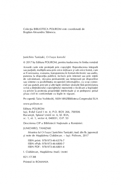 Esential. cu plata ramburs sau online cu cardul. Momentan titlul "Moartea lui O-Tsuya" nu este disponibil însa vă puteți înscrie pentru a fi notificat în momenul reaprovizionarii.">