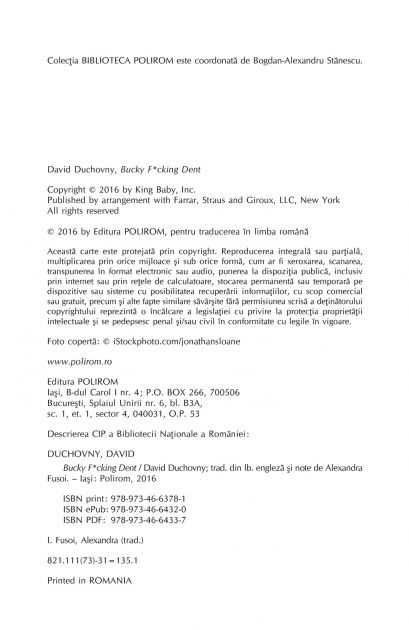 Comandă online cartea "Bucky F*cking Dent" la 10,60 lei isbn 9789734663781 scrisă de David Duchovny, tiparită la editura Polirom face parte din colecția BIBLIOTECA POLIROM -> Actual. Cartea poate fi livrată în circa 2 zile cu plata ramburs sau online cu cardul.