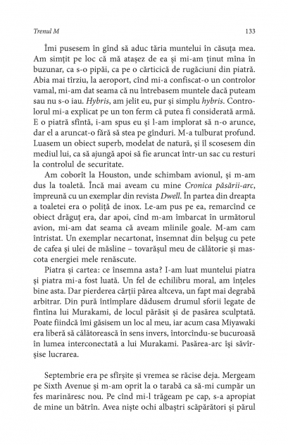 „Ce înseamnă să fii femeie şi să fii singură? Această întrebare este esenţa volumului Trenul M, alături de veşnica interogaţie: unde găseşti cea mai bună cafea? Trenul M e un jurnal al călătoriilor alimentate cu cafeină, imaginativ, emoţionant, transgresiv şi de o stranietate încîntătoare, care te face să rătăceşti şi în care te pierzi, doar ca să descoperi apoi esenţa adevărului şi a comuniunii în propria ta fiinţă.” (Los Angeles Review of Books)