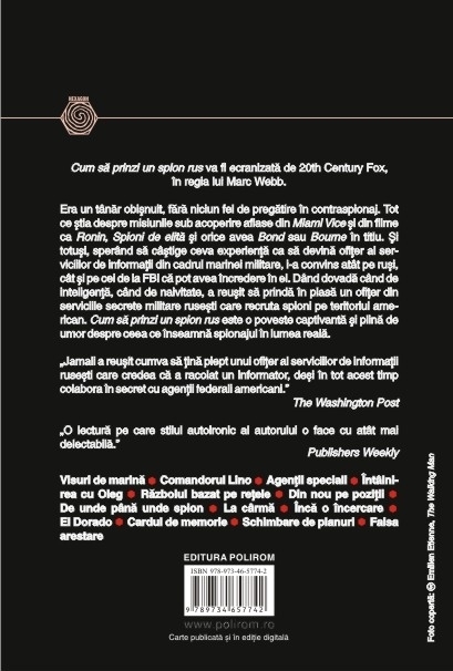Era un tinar obisnuit, fara niciun fel de pregatire in contraspionaj. Tot ce stia despre misiunile sub acoperire aflase din Miami Vice si din filme ca Ronin, Spioni de elita si orice avea Bond sau Bourne in titlu. Si totusi, sperind sa cistige ceva experienta ca sa devina ofiter al serviciilor de informatii din cadrul marinei militare, i-a convins atit pe rusi, cit si pe cei de la FBI ca pot avea incredere in el. Dind dovada cind de inteligenta, cind de naivitate, a reusit sa prinda in plasa un ofiter din serviciile secrete militare rusesti care recruta spioni pe teritoriul american. Cum sa prinzi un spion rus este o poveste captivanta si plina de umor despre ceea ce inseamna spionajul in lumea reala.