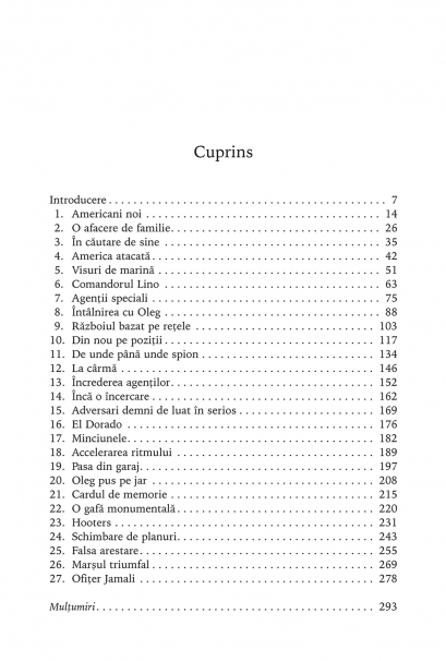 Visuri de marina • Comandorul Lino • Agentii speciali • Intilnirea cu Oleg • Razboiul bazat pe retele • Din nou pe pozitii • De unde pina unde spion • La cirma • Inca o incercare • El Dorado • Cardul de memorie • Schimbare de planuri • Falsa arestare