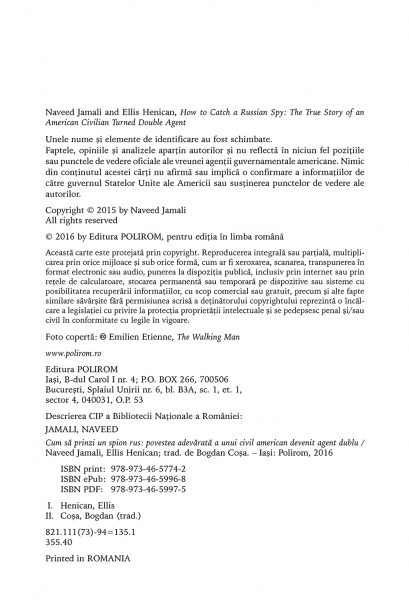 Comandă online cartea "Cum să prinzi un spion rus. Povestea adevărată a unui civil american devenit agent dublu" la 11,66 lei isbn 9789734657742 scrisă de Ellis Henican , Naveed Jamali, tiparită la editura Polirom face parte din colecția Hexagon. cu plata ramburs sau online cu cardul. Momentan titlul "Cum să prinzi un spion rus. Povestea adevărată a unui civil american devenit agent dublu" nu este disponibil însa vă puteți înscrie pentru a fi notificat în momenul reaprovizionarii.