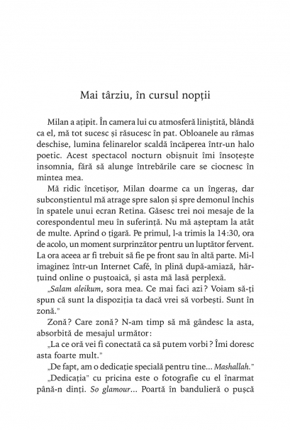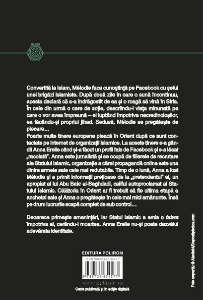 Traducere de Nicolae Constantinescu Bestseller international Convertita la islam, Melodie face cunostinta pe Facebook cu seful unei brigazi islamiste. Dupa doua zile in care o suna incontinuu, acesta declara ca s-a indragostit de ea si o roaga sa vina in Siria. In cele din urma o cere de sotie, descriindu-i viata minunata pe care o vor avea impreuna – el luptind impotriva necredinciosilor, ea facindu-si propriul jihad. Sedusa, Melodie se pregateste de plecare… Foarte multe tinere europene pleaca in Orient dupa ce sint contactate pe internet de organizatii islamice. La aceste tinere s-a gindit Anna Erelle cind si-a facut un profil fals de Facebook si s-a lasat „racolata”. Anna este jurnalista si se ocupa de filierele de recrutare ale Statului Islamic, organizatie a carei propaganda online este una dintre armele sale cele mai redutabile. Timp de o luna, Anna a fost Melodie si a primit informatii pretioase de la „pretendentul” ei, un apropiat al lui Abu Bakr al-Baghdadi, califul autoproclamat al Statului Islamic. Calatoria in Orient ar fi trebuit sa fie ultima etapa a anchetei sale si Anna o pregateste in cele mai mici amanunte. Insa pe drum lucrurile scapa complet de sub control…