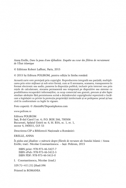 Comandă online cartea "În pielea unei jihadiste. O mărturie despre filierele de recrutare ale Statului Islamic" la 34,87 lei isbn 9789734654277 scrisă de Anna Erelle, tiparită la editura Polirom face parte din colecția Hexagon. cu plata ramburs sau online cu cardul. Momentan titlul "În pielea unei jihadiste. O mărturie despre filierele de recrutare ale Statului Islamic" nu este disponibil însa vă puteți înscrie pentru a fi notificat în momenul reaprovizionarii.