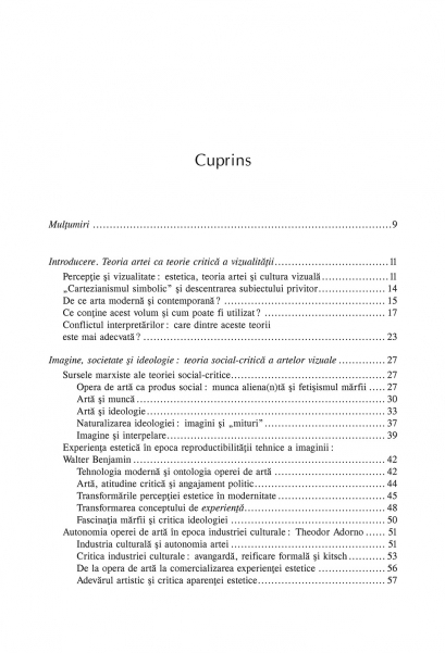 Operele de arta isi datoreaza notorietatea modului in care sunt percepute de privitor, in special de cel profesionist. Odata cu transformarile petrecute in domeniul artelor vizuale de-a lungul timpului s-a schimbat si felul in care publicul a receptat si interpretat lucrarile de arta. Volumul isi propune o introducere in teoriile artei moderne si contemporane, cu accent pe relatia dintre subiectul receptor si opera de arta, din perspectiva relatiilor de putere, a retoricii vizuale si a structurilor dorintei. Istoricii si criticii de arta, esteticienii, precum si artistii din noile generatii vor gasi aici conceptele si teoriile care au influentat decisiv studiul imaginii in ultima jumatate de secol, explorind diverse tipuri de analiza critica a vizualitatii.