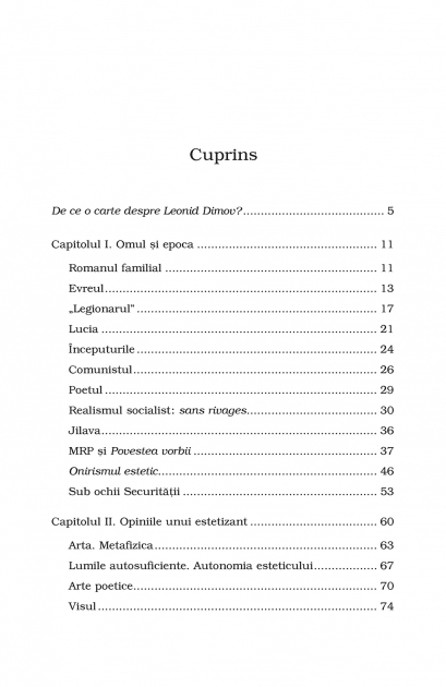 Putin cunoscut marelui public, desi poeti celebri ca Mircea Cartarescu si Emil Brumaru il recunosc drept maestru, Leonid Dimov (1926-1987) este pentru prima data, acum, studiat sistematic, intr-o cercetare monografica. Cu documentele din Arhiva CNSAS pe masa, Luminita Corneanu reconstituie un destin uman si literar dramatic, marcat de tragediile colective ale Romaniei secolului XX, de la prigoana impotriva evreilor din anii ’40 la supravegherea Securitatii in timpul comunismului.