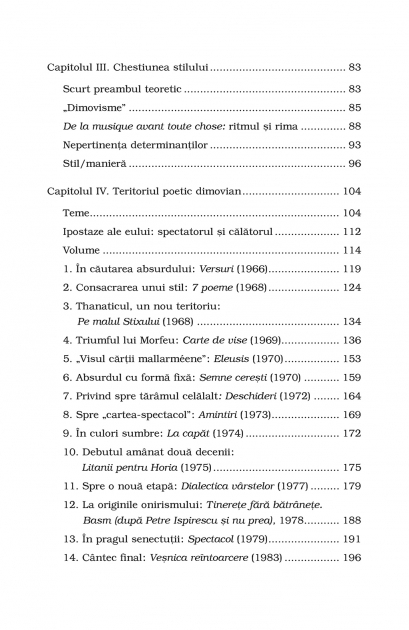 Celebru pentru spiritul lui de fronda, Leonid Dimov, scriitorul care a urinat in 1957 pe statuia lui Stalin, nu avea cum sa scrie altceva decit o poezie iesita din tipare. „Tu, Dimov, faci ceva uluitor, as spune ca schimbi macazul unei intregi literaturi”, ii scria Emil Brumaru in 1968. Analizind resorturile intime ale poeziei dimoviene, cartea de fata arata cum s-a produs aceasta schimbare si in ce fel a influentat Leonid Dimov generatiile poetice de dupa el.