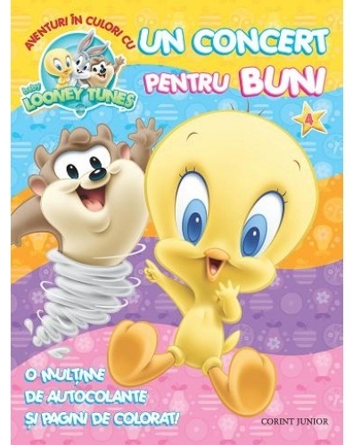 O MULŢIME DE AUTOCOLANTE ŞI PAGINI DE COLORAT! Colecţionează toate cărticelele din seria de poveşti bilingve cu Baby Looney Tunes, citeşte povestioarele distractive şi educative şi exersează-ţi cunoştinţele de limbă engleză cu personajele tale preferate din desenele animate!