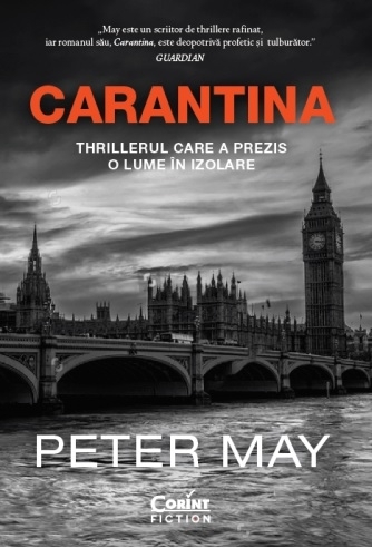 UN ORAȘ ÎN CARANTINĂ. UN COPIL UCIS. O CONSPIRAȚIE PUTERNICĂ Scris în urmă cu 15 ani, dar niciodată publicat până acum, acest thriller care s-a dovedit profetic urmărește povestea unor personaje cărora pandemia de gripă le răpește ce aveau mai scump. Londra, epicentrul pandemiei, este un oraș izolat, în care domnesc violența și dezordinea. Nimeni nu mai este în siguranță, iar virusul ucigaș a făcut sute de mii de victime. Serviciile de urgență sunt copleșite. Pe acest fundal, oasele arse ale unui copil ucis sunt descoperite pe un șantier unde muncitorii lucrează febril la construirea unui spital de urgență. Detectivul Jack MacNeil este trimis să investigheze. Cu o carieră distrusă, o căsnicie eșuată și un băiețel ucis de temutul virus, polițistul crede că nu mai are nimic de pierdut. Forțe sinistre îl pândesc din umbră, pregătite să ucidă din nou pentru a împiedica aflarea adevărului. Așadar, cine îl va opri mai întâi pe Jack: virusul sau criminalii? „Virusul imaginat de May este mai periculos decât Covid-19, iar descrierea pe care autorul o face orașului în carantină, precum și explicațiile pe care le oferă privind răspândirea bolii sunt înspăimântător de asemănătoare cu ce am trăit în perioada aceasta.” OBSERVER „Timp de șase săptămâni am scris, noapte de noapte, ca sub puterea unei vrăji, Carantina. Cartea n-a fost publicată. Editorii britanici de la acea vreme au considerat că portretul pe care îl făceam Londrei sub asediul inamicului invizibil H5N1 era nerealist și că așa ceva nu se va întâmpla niciodată [...], iar fișierul Carantina a fost expediat într-un folder din Dropbox, unde a și rămas. Până acum. În timp ce scriu aceste rânduri, sunt din nou acasă, în Franța, cu somația de a nu părăsi locuința decât în situații excepționale. Un nou coronavirus, Covid-19, face ravagii în lume, iar societatea, așa cum o știm noi, se dezintegrează rapid. [...] Politicienii sunt nevoiți să țină sub control haosul și panica pe care Covid-19 le răspândește în lume. [...] Așa că acesta mi s-a părut momentul potrivit pentru a deschide dosarul prăfuit din Dropbox și pentru a scoate acel vechi manuscris, cu gândul de a-l împărtăși cu cititorii mei – măcar și pentru a putea înțelege cu toții că lucrurile ar putea fi încă și mai grave.” PETER MAY