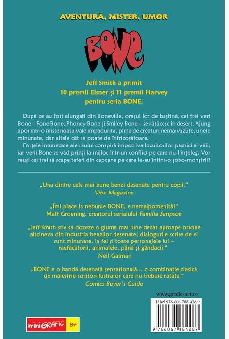 „BONE e o bandă desenată senzațională... o combinație clasică de măiestrie scriitor-ilustrator care nu trebuie ratată.” Comics Buyer’s Guide