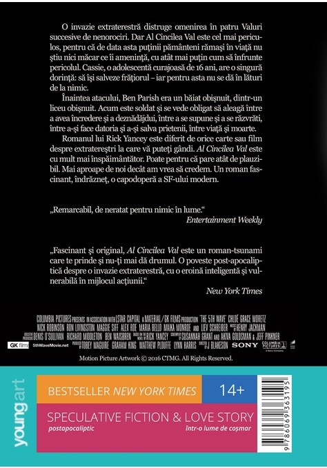 Romanul lui Rick Yancey este diferit de orice carte sau film despre extratereştri la care vă puteţi gândi. Al Cincilea Val este cu mult mai înspăimântător. Poate pentru că pare atât de plauzibil. Mai aproape de noi decât am vrea să credem. Un roman fascinant, îndrăzneţ, o capodoperă a SF-ului modern.