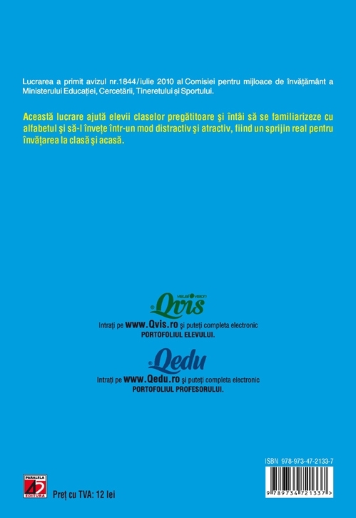 Aceasta lucrare ajuta elevii claselor pregatitoare si clasei I sa invete alfabetul intr-un mod distractiv si atractiv, fiind de un real sprijin pentru invatarea la clasa si acasa.
