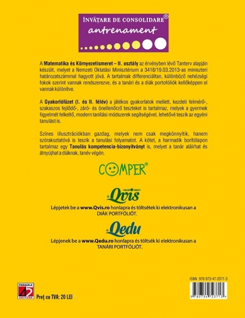 A Matematika és Környezetismeret – II. osztály az érvényben lévő Tanterv alapján készült, melyet a Nemzeti Oktatási Minisztérium a 3418/19.03.2013-as miniszteri határozatszámmal hagyott jóvá. A tartalmak differenciáltan, különböző nehézségi fokok szerint vannak rendszerezve, és a tanári és a diák portofóliók kellőképpen el vannak különítve.