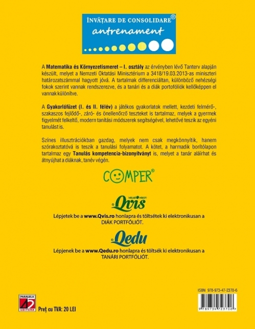 A Matematika és Környezetismeret – I. osztály az érvényben lévő Tanterv alapján készült, melyet a Nemzeti Oktatási Minisztérium a 3418/19.03.2013-as miniszteri határozatszámmal hagyott jóvá. A tartalmak differenciáltan, különböző nehézségi fokok szerint vannak rendszerezve, és a tanári és a diák portofóliók kellőképpen el vannak különítve.