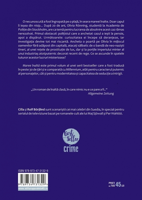 Maree înaltă este primul volum al unei serii bestseller care a fost tradusă în peste 30 de țări și e comparată cu Millenium, atât pentru caracterul puternic al personajelor, cât și pentru modernitatea și capacitatea de seducție a intrigii.