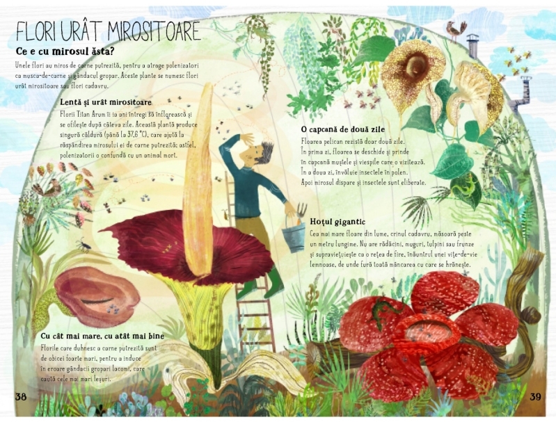 În paginile de început, cititorii vor învăța totul despre botanică, inclusiv cum să recunoască diferite tipuri de flori. Paginile următoare ilustrează diferitele habitate care găzduiesc flora, cum ar fi plantele urcior, nuferii uriași și floarea-soarelui. Cititorii vor descoperi ce flori sunt pe cale de dispariție și de ce unele flori sunt parfumate sau colorate, ca să nu mai vorbim despre detaliile fascinante ale florilor carnivore și otrăvitoare.