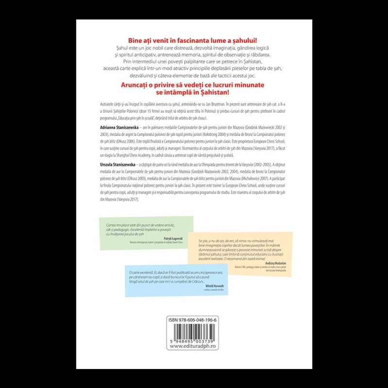 Prin intermediul unei povești palpitante care se petrece în Șahistan, această carte explică, într-un mod atractiv, principiile deplasării pieselor pe tabla de șah, dezvăluind și câteva elemente de bază ale tacticii acestui joc.