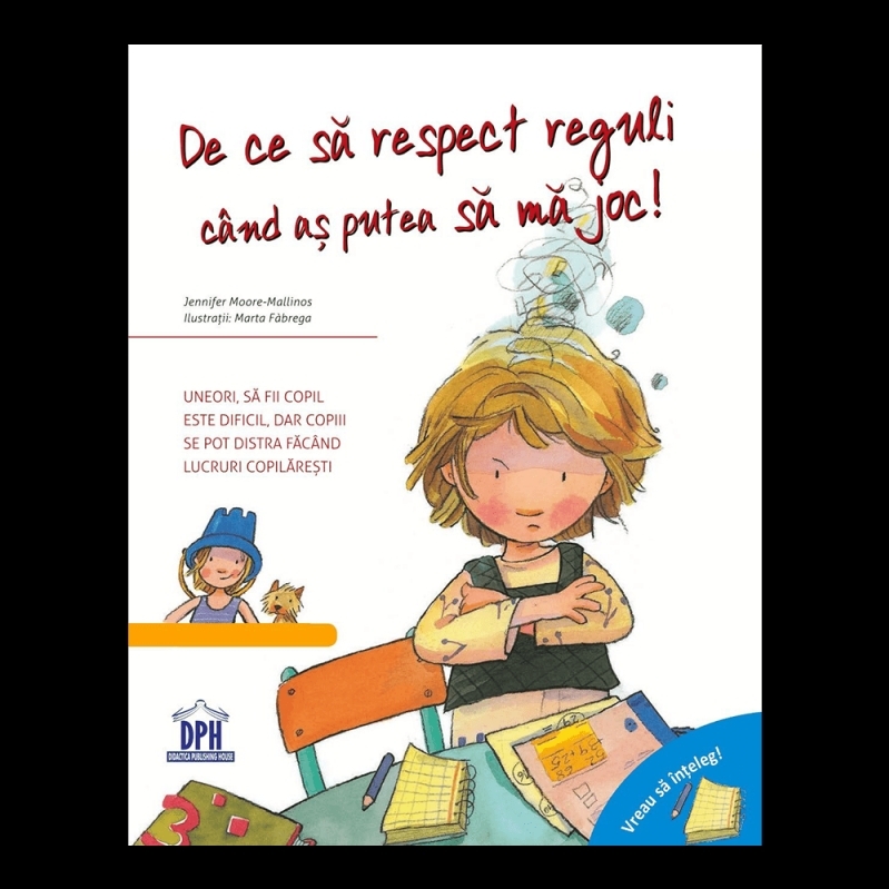 Cartea De ce să respect reguli când aș putea să mă joc! face parte din seria „Vreau să înțeleg” și le arată copiilor că, uneori, să fii copil este dificil, dar copiii se pot distra făcând lucruri copilărești.