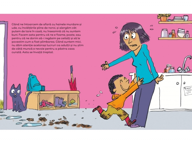 Personajul principal din carte explică situații din viață cu care se poate confrunta un copil, situații în care ajunge să fie răutăcios fără să vrea. (când împarte o jucărie cu un alt copil, când se întoarce de la joacă cu hainele murdare și murdare).