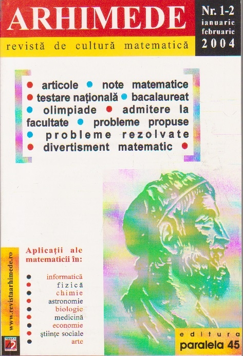 Comandă online cartea "Arhimede - Revista de cultura matematica, Nr. 1-12/2004" la 26,40 lei scrisă de Petrus Alexandrescu, tiparită la editura Paralela 45 face parte din colecția REVISTA ARHIMEDE în anul 2004. cu plata ramburs sau online cu cardul. Momentan titlul "Arhimede - Revista de cultura matematica, Nr. 1-12/2004" nu este disponibil însa vă puteți înscrie pentru a fi notificat în momenul reaprovizionarii.