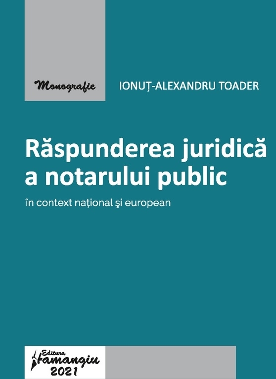 Raspunderea juridica a notarului public in context national si european reprezinta teza de doctorat autorului, ca rezultat al cercetarii doctorale incheiate in anul 2016.