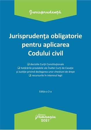 In lucrarea Jurisprudenta obligatorie pentru aplicarea Codului civil au fost incluse atat deciziile prin care Curtea Constitutionala a declarat neconstitutionale unele prevederi din Codul civil, cat si deciziile de admitere pronuntate de completurile competente ale Inaltei Curti de Casatie si Justitie referitoare la sesizarile privind dezlegarea unor chestiuni de drept si recursurile in interesul legii in materie, fiind redate in extenso motivarile acestora astfel cum au fost publicate in Monitorul Oficial.