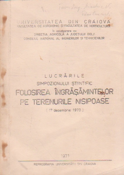 Comandă online cartea "Folosirea Ingrasamintelor pe Terenurile Nisipoase" la 26,40 lei scrisă de Universitatea din Craiova, tiparită la editura Reprografia Universitatii din Craiova face parte din colecția Facultatea de Agronomie în anul 1971. cu plata ramburs sau online cu cardul. Momentan titlul "Folosirea Ingrasamintelor pe Terenurile Nisipoase" nu este disponibil însa vă puteți înscrie pentru a fi notificat în momenul reaprovizionarii.