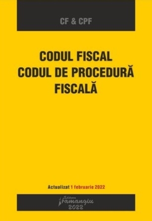 Volumul Codul fiscal. Codul de procedura fiscala reuneste cele doua acte normative de baza in materia fiscalitatii, actualizate cu modificarile si completarile la zi. Textele codurilor sunt corelate cu intreaga legislatie conexa, prin indicarea la nivelul fiecarui articol a ordinelor care contin instructiuni si proceduri de aplicare emise de Ministerul Finantelor Publice, de Agentia Nationala de Administrare Fiscala sau de alte autoritati cu atributii de reglementare in domeniu.
