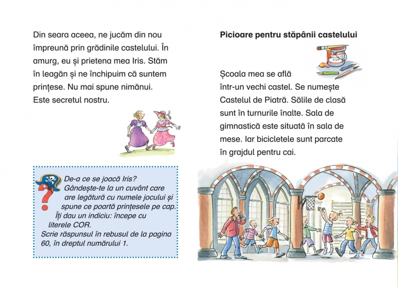 Cartea conține întrebări din text pentru a verifica atenția și capacitatea de înțelegere a copilului.