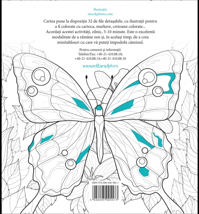 Pentru a colora paginile acestei cărți nu trebuie să ai abilități la desen sau calități speciale, ci doar puțin timp pentru relaxare și detașare. Colorând, vei uita de problemele cotidiene și vei beneficia de momente de liniște și împlinire.