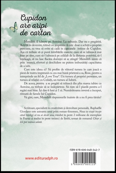 Comandă online cartea "Cupidon are aripi de carton" la 40,20 lei isbn 9786060483427 scrisă de raphaelle giordano, tiparită la editura Didactica Publishing House nefolosita (noua). Cartea poate fi livrată în circa 2 zile cu plata ramburs sau online cu cardul.