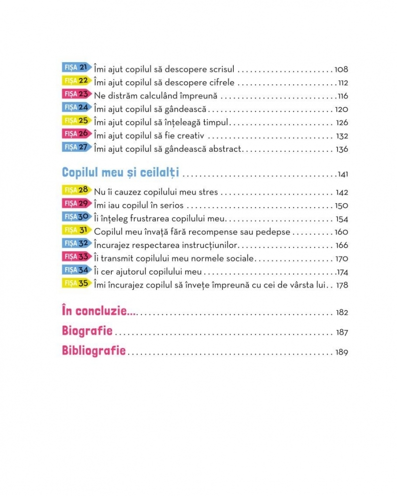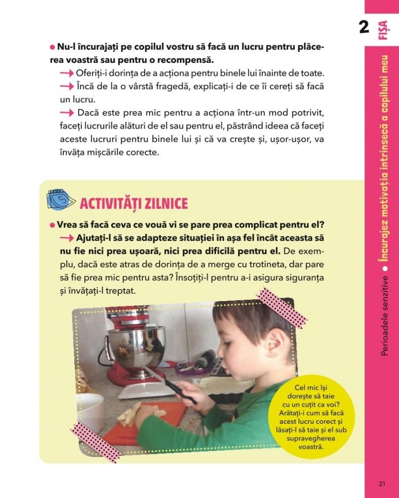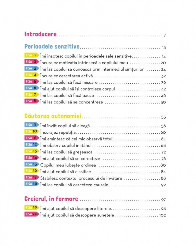 Această carte vă ajută să descoperiți perioadele senzitive ale copilului vostru, să învățați să-l ajutați să-și dobândească primele cunoștințe școlare și să-și dezvolte competențele sociale și emoționale. De asemenea, îi facilitați autonomia în toate activitățile cotidiene.