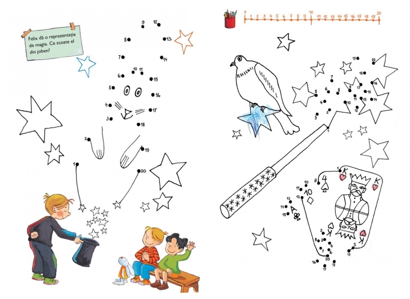 Pregătiți creioanele! De la punct la punct, toată lumea înțelege unde să meargă. Cu creionul în mână, toți copiii pot crea o imagine, bucată cu bucată, ca prin magie.
