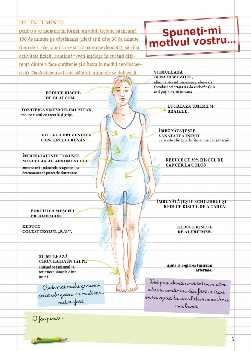 Mersul reduce colesterolul „rău”, îmbunătățește tonusul muscular, stimulează buna dispoziție și are multe alte efecte benefice care ne sunt explicate în carte.