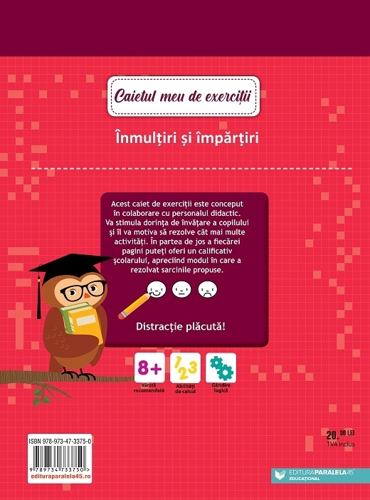 Acest caiet de exerciții este conceput în colaborare cu personalul didactic. Va stimula dorinţa de învăţare a copilului şi îl va motiva să rezolve cât mai multe activități. În partea de jos a fiecărei pagini puteţi oferi un calificativ şcolarului, apreciind modul în care a rezolvat sarcinile propuse.